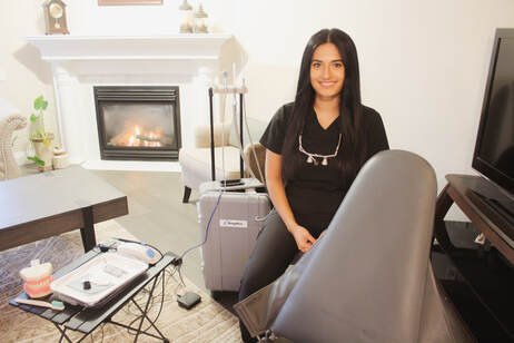 As a mobile dental hygienist, my responsibility is to travel to a patient’s residential space and provide services like teeth cleaning, preventative dental care, and teach them about oral hygiene.